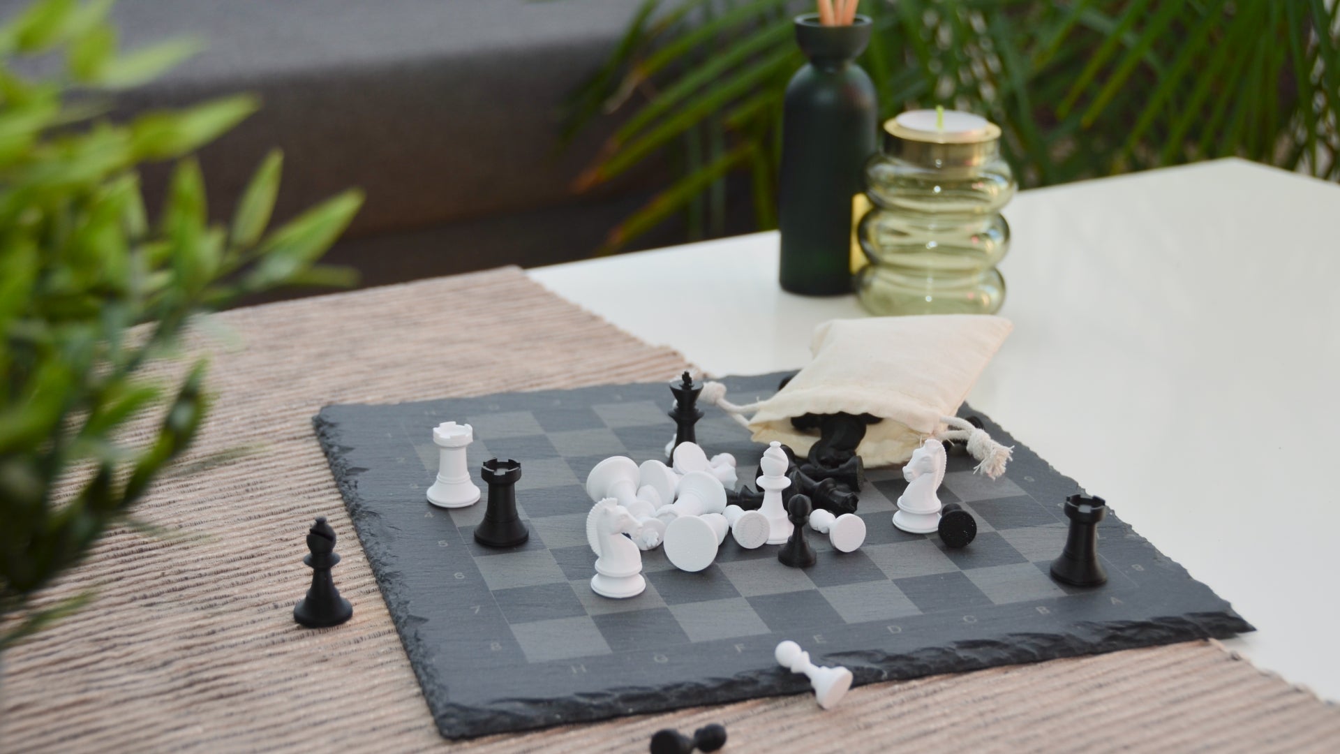 Dame Spiel aus Schiefer – Klassisches Taktik Set | Personalisiertes Geschenk